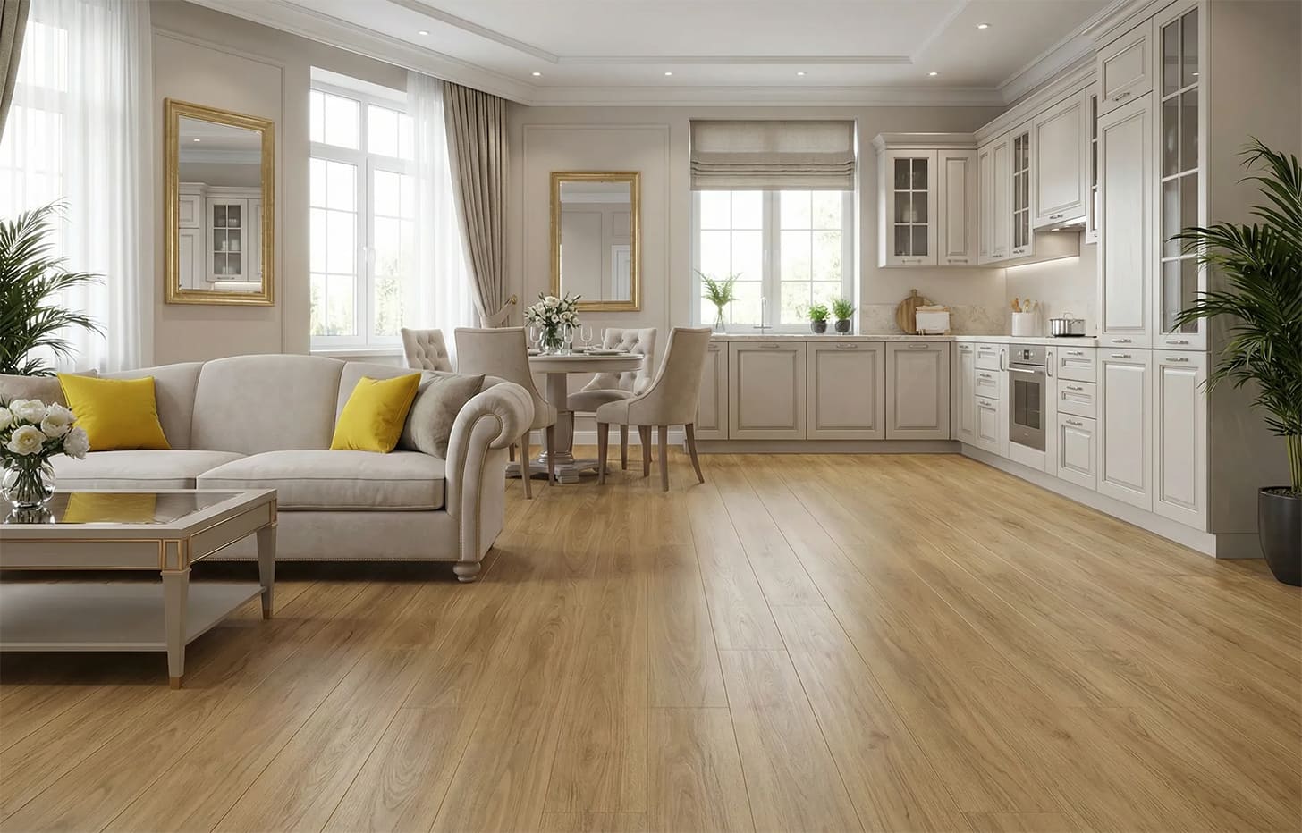 Адреса магазиновМинерально-каменный ламинат Дуб Гран-При получил свое название за изысканную фактуру и полное отсутствие дефектов древесины: на ламелях вы не встретите ни глазков, ни трещин. Каждая доска имеет строго селективный вид, а в сборе вы получите изысканный классический дубовый пол. Дуб Гран-При станет незаменимым решением при создании интерьеров в стиле классика и неоклассика. Хорошо сочетается с элементами лепнины, зеркалами в золотых рамах, элегантным текстилем. Доска имеет умеренно широкий формат и подходит как для небольших, так и средних помещений.