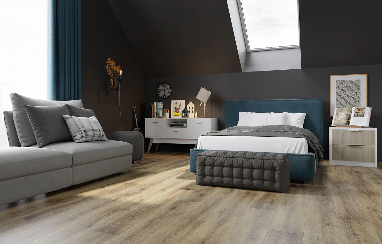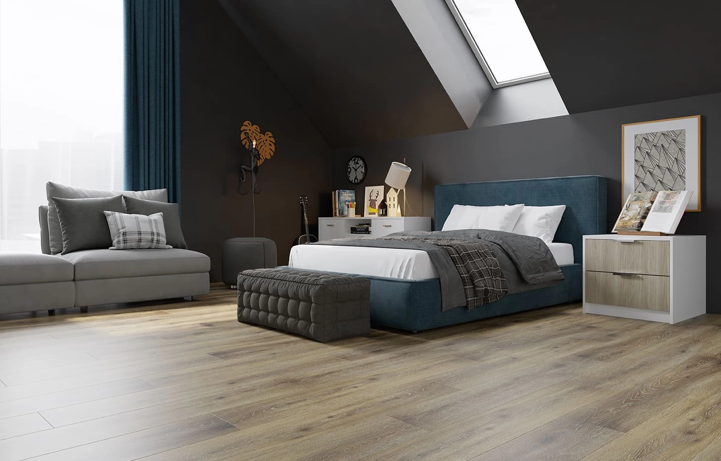 Минерально-каменный Ламинат MSPC Дуб Уютный дом - это полы светло-коричневого оттенка с легкими холодными нотками. Хорошо сочетаются с бежевыми, бордовыми, синими и серыми цветами в стеновых решениях. Легкие седые прожилки помогают гармонировать с белыми эмалевыми дверями и плинтусом. Дуб Уютный дом имеет высокую Anti Scratch защиту и подходит для использования в доме с домашними животными.