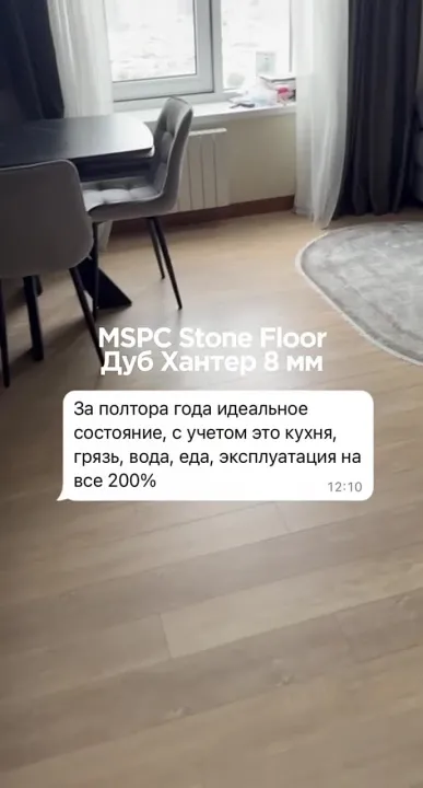 Покупали ламинат MSPC Дуб Домашний очаг в Stone floor и остались довольны. Качество отличное. На пол стулья, молотки падали и никаких отметин не осталось. Коты бегают целыми днями друг за другом и дрифтуют когтями — тоже следов от когтей не остаётся. Пол не холодный совсем, босиком ходим в любо...